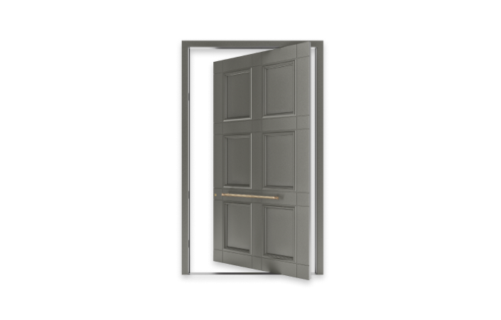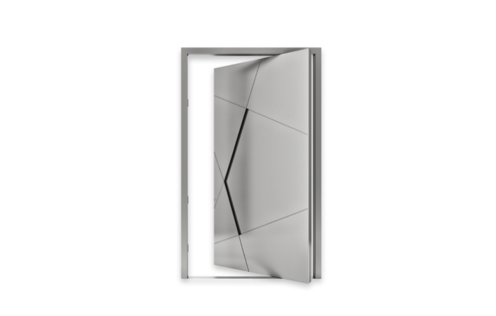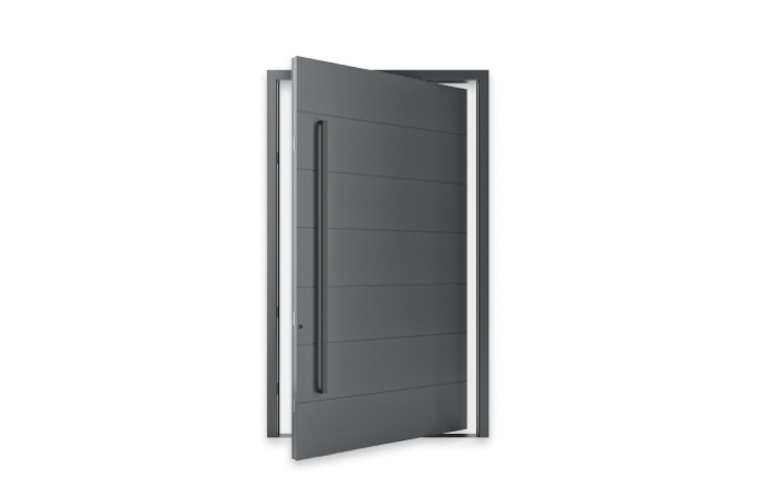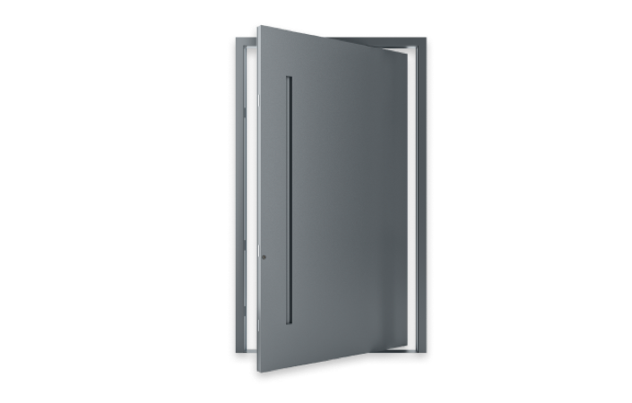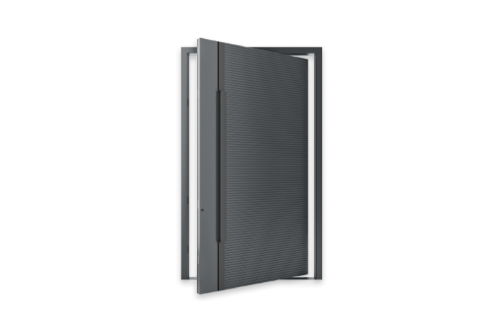 Frezowania na powierzchni wypełnienia drzwiowego są możliwe dzięki technologi tworzenia poziomych regularnych przetłoczeń na panelu aluminiowym.